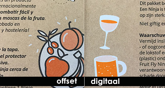 In onderstaande afbeeldingen zie je het verschil tussen digitaal en offset.